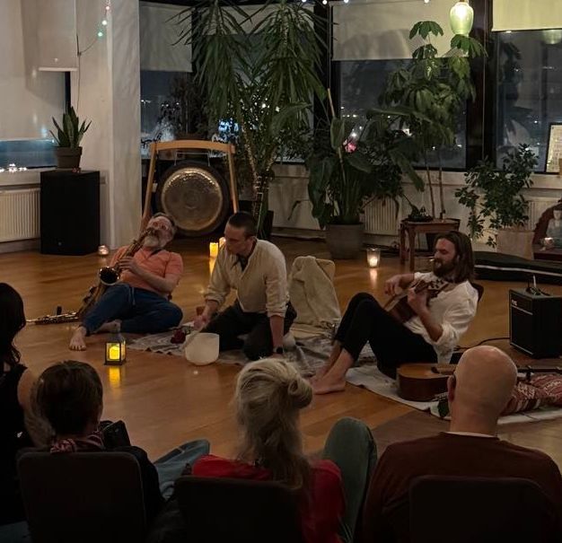 Slakandi og endurnærandi hljóðferðalag með gong spilun, crystal skálum, native american flautu og fleiri fallegum hljóðfærum.